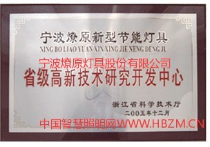 證書介紹 寧波燎原燈具股份有限公司榮獲省級高新技術(shù)研究開發(fā)中心