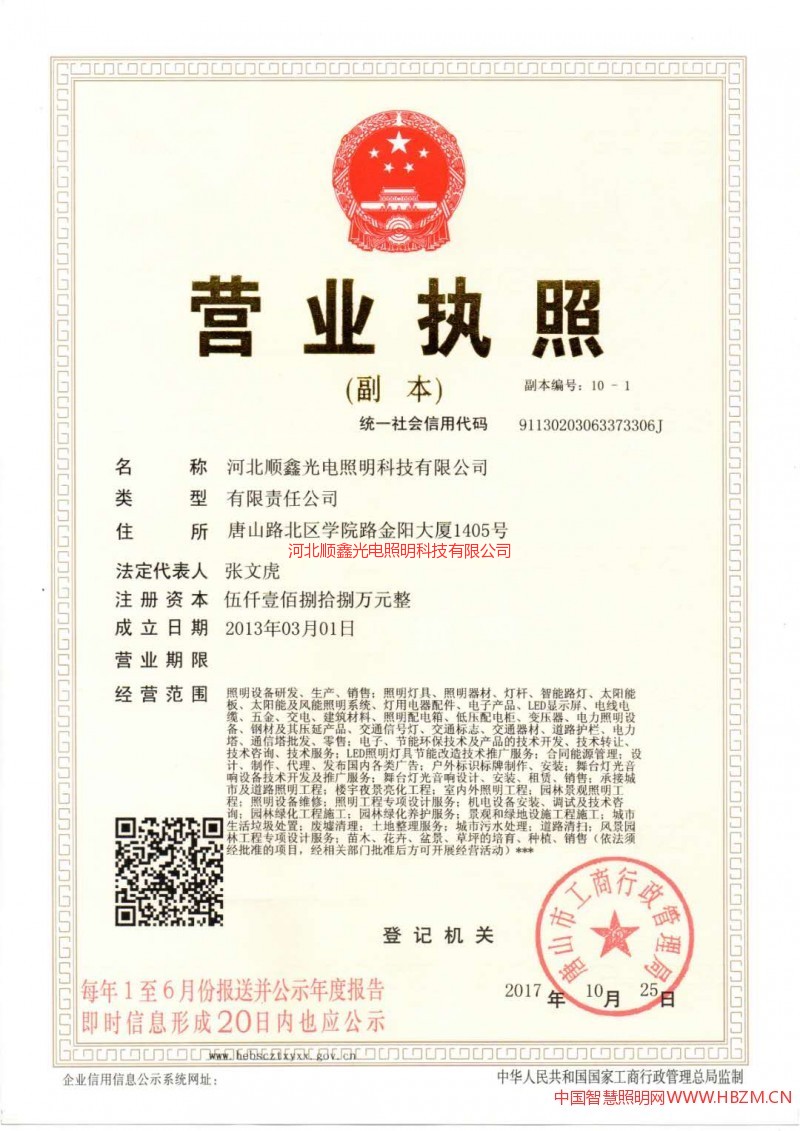 河北順鑫光電照明科技有限公司營業(yè)執(zhí)照