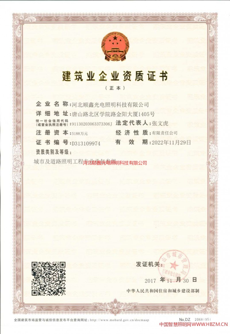 您當(dāng)前的位置:首頁(yè) » 榮譽(yù)資質(zhì) » 河北順鑫光電照明科技有限公司建筑企業(yè)資質(zhì)證書