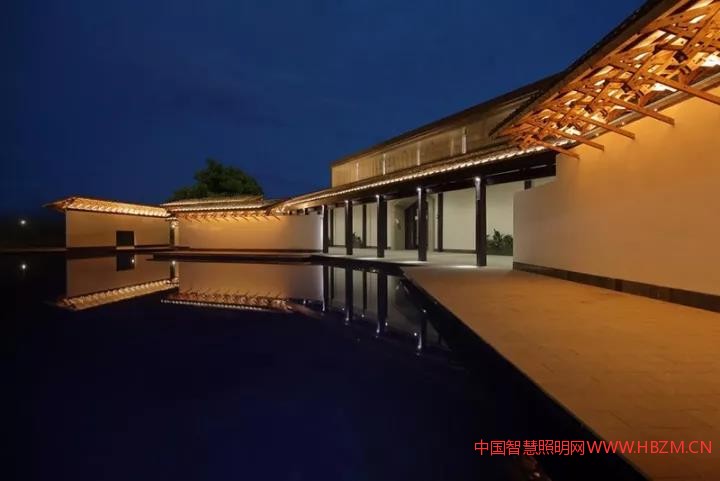 接待中心是烏鎮(zhèn)的客廳,也是連接世界的“入口”。為在莊嚴(yán)肅穆的氣勢(shì)中營(yíng)造與人親近的尺度和質(zhì)感,在視覺上融入環(huán)境,整個(gè)會(huì)議中心的燈光設(shè)計(jì)以間接照明為主,幾乎所有燈具都被嵌入于披檐與地底,使得該中心給人一種溫馨和諧的感覺。