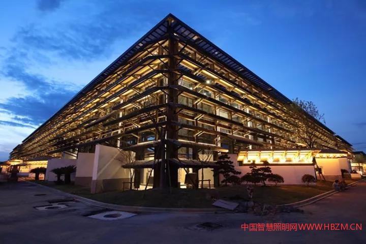 本項(xiàng)目的照明設(shè)計(jì)由浙江城建規(guī)劃設(shè)計(jì)院有限公司完成,燈具提供方羅萊迪思也在烏鎮(zhèn)互聯(lián)網(wǎng)國(guó)際會(huì)展中心照明項(xiàng)目的實(shí)施中扮演了相當(dāng)重要的角色。至于會(huì)議中心的瓦木披檐,設(shè)計(jì)師們利用女兒墻建筑本身結(jié)構(gòu)隱藏?zé)艟?,運(yùn)用支架安裝的方式,將高亮度琥珀色的魔方LED洗墻燈固定在女兒墻頂端,使得光從建筑內(nèi)部漫反射出自然光暈。
