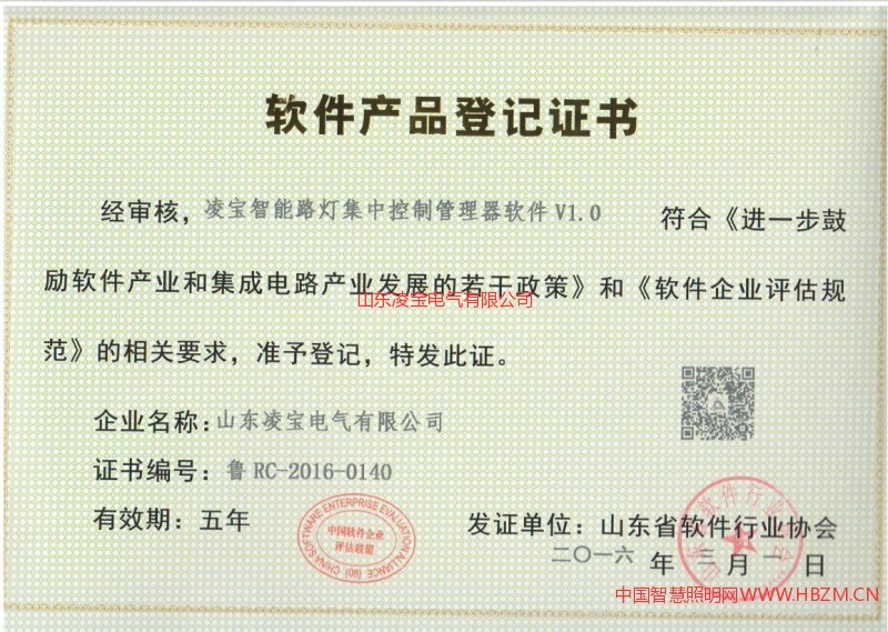 證書介紹 凌寶智能路燈集中控制管理器軟件V1.0 證書圖片 |