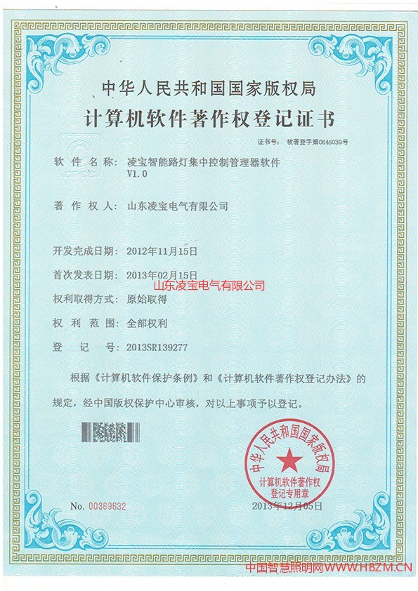» 計算機軟件著作權(quán)登記證書