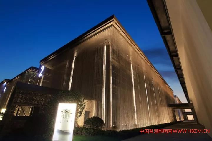 展覽中心是由5.1萬根的鋼索組成的,燈光設(shè)計(jì)團(tuán)隊(duì)希望達(dá)到“光從內(nèi)部透出”的剪影效果,將烏鎮(zhèn)特質(zhì)呈現(xiàn)出來。經(jīng)過大量的現(xiàn)場試燈,最終選擇了15W 2700K色溫的燈具,使展覽中心達(dá)到了含蓄優(yōu)雅的燈光效果;設(shè)計(jì)師們還在金屬幕墻安裝了光盒,使之均勻地散發(fā)出暖白色的光,簡單而淡雅。